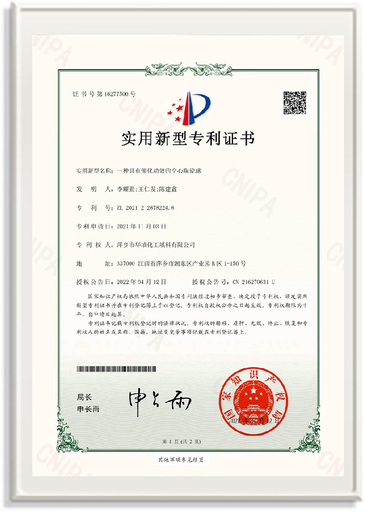 萍鄉(xiāng)市華填化工填料有限公司,位于320國(guó)道、109國(guó)道、浙贛鐵路、昌金高速公路貫穿其中,交通便利,是江西西部一顆燦爛明珠,創(chuàng)建于20世紀(jì)70年代初期,是中國(guó)石油天然氣股份有限公司“能源一號(hào)網(wǎng)”會(huì)員企業(yè)、中國(guó)石化物資采購(gòu)電子商務(wù)網(wǎng)絡(luò)和中國(guó)海洋石油總公司采辦業(yè)務(wù)系統(tǒng)成員單位,是上海大學(xué)江西材料基因組工程產(chǎn)業(yè)研究院工業(yè)陶瓷產(chǎn)業(yè)創(chuàng)新聯(lián)盟基地,且通過(guò)ISO9001:2015質(zhì)量管理體系、ISO14001:2015環(huán)境管理體系、ISO45001:2018職業(yè)健康安全管理體系認(rèn)證的化工填料生產(chǎn)企業(yè)。公司擁有陶瓷、塑料、金屬填料、催化劑、活性氧化鋁、分子篩等產(chǎn)品生產(chǎn)線,現(xiàn)有固定資產(chǎn)3616萬(wàn)元,占地面積3.8萬(wàn)平方米。公司具有悠久的生產(chǎn)歷史、雄厚的技術(shù)力量和先進(jìn)的生產(chǎn)工藝設(shè)備,可生產(chǎn)工業(yè)瓷球(支撐劑)、陶瓷、金屬、塑料質(zhì)的規(guī)整、散堆化工填料及分子篩、催化劑、生化濾料、活性氧化鋁、石化助劑、活性炭、環(huán)保材料、耐火材料等系列的200多種規(guī)格型號(hào)產(chǎn)品。